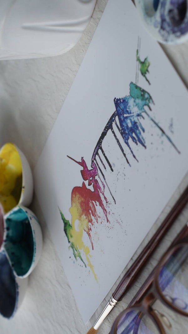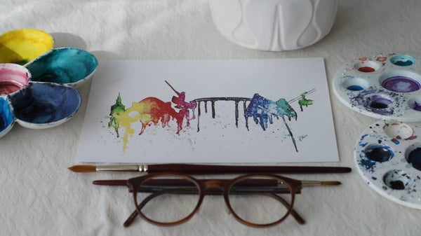 Experience Tromsø in a spectrum of colors! Featuring iconic silhouettes such as the cathedral, the old Fokus cinema, the hunter statue, Tromsø Bridge, the Arctic Cathedral, and Fjellheisen, this artwork tells a story of international connections, resilience, and cultural richness. Home to 78,000 people, Tromsø thrives on a shared identity and a good laugh.