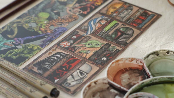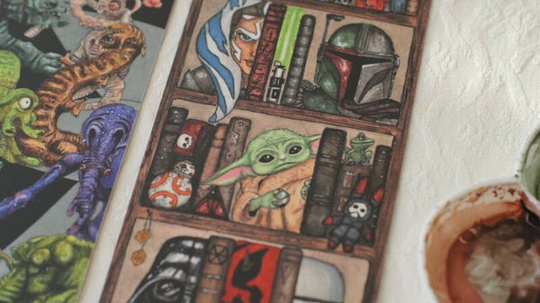 Han elsket den kreative vrien, og spurte om jeg kunne lage et lignende bokmerke, men denne gangen inspirert av Star Wars-universet. Problemet? Min kunnskap om Star Wars var mildt sagt begrenset! Heldigvis hadde jeg en kompis som var en ekte Star Wars-entusiast, og han insisterte på at jeg burde se filmene for å finne inspirasjon.