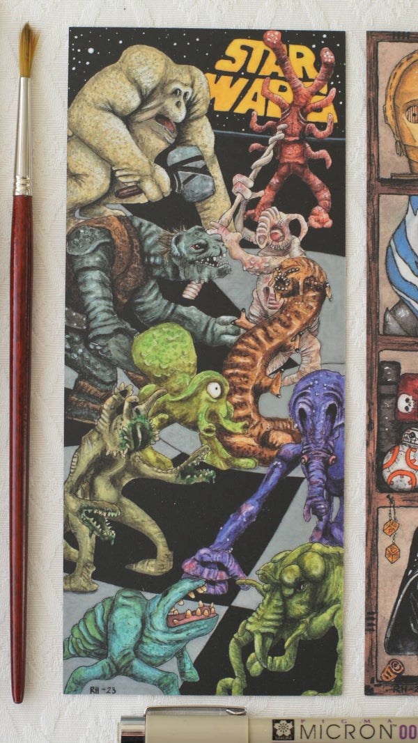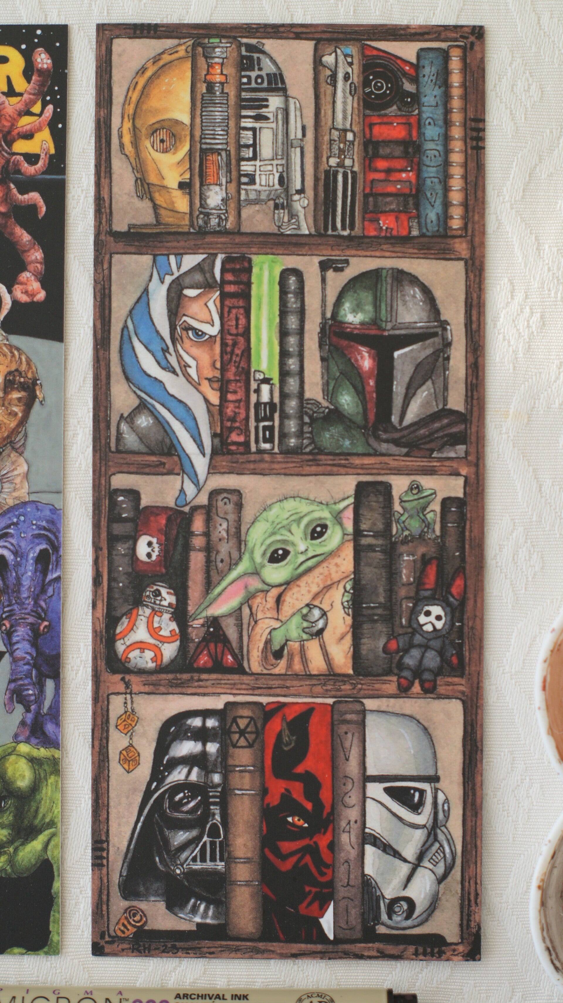 ''It All Started with an Order from a Star Wars Enthusiast in Australia It began with a request from a passionate Star Wars fan in Australia. He had seen one of my earlier bookmarks, designed as a bookshelf where the spines of the books featured iconic Marvel characters—complete with details like Iron Man’s helmet and Spider-Man’s mask peeking out. He loved the creative twist and asked if I could make a similar bookmark, but this time inspired by the Star Wars universe. The problem? My knowledge of Star Wars was, to put it mildly, limited! Luckily, my friend insisted that I watch the movies to find inspiration.