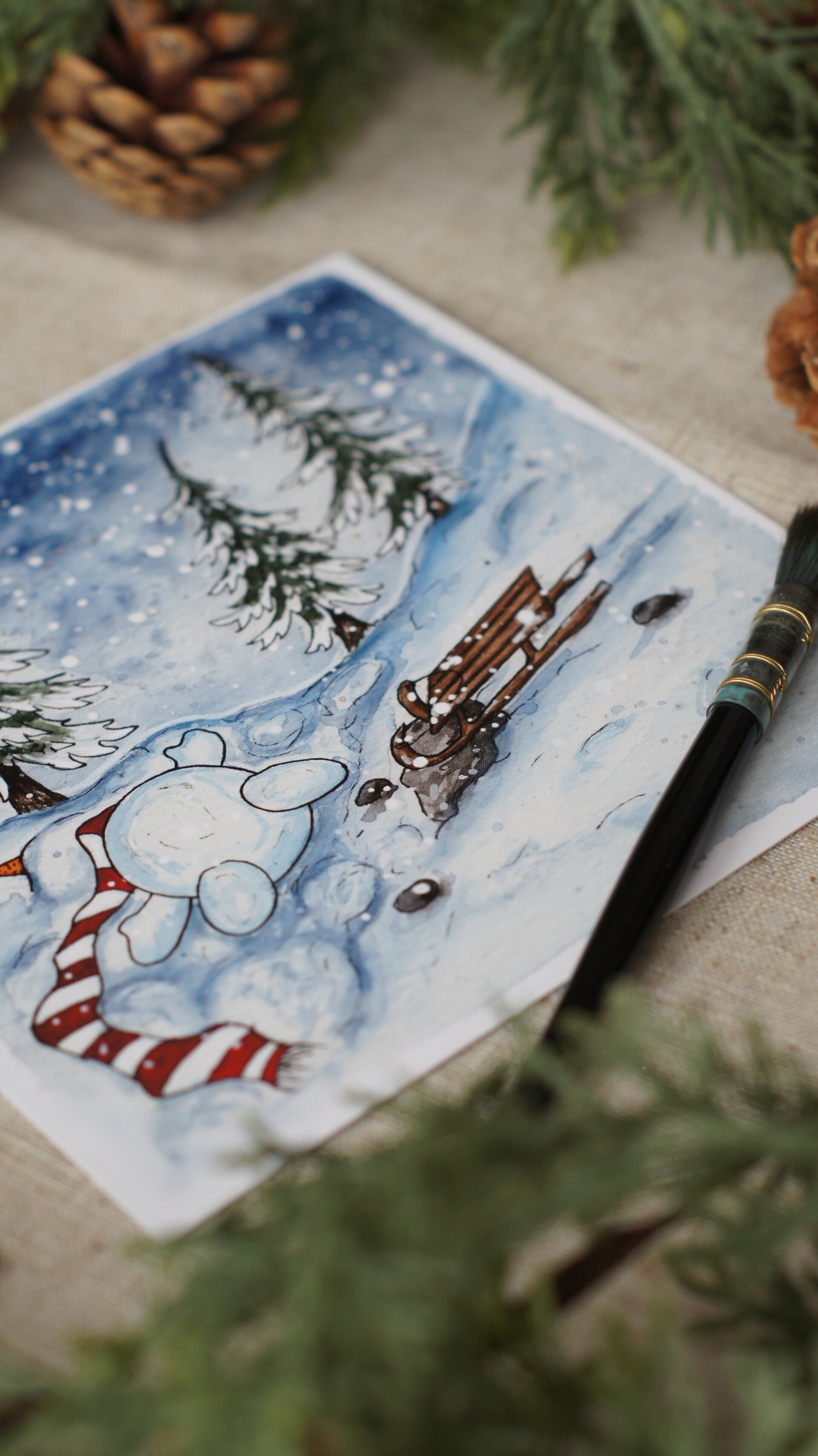Style: Illustrative watercolor with ink details in a semi-realistic style